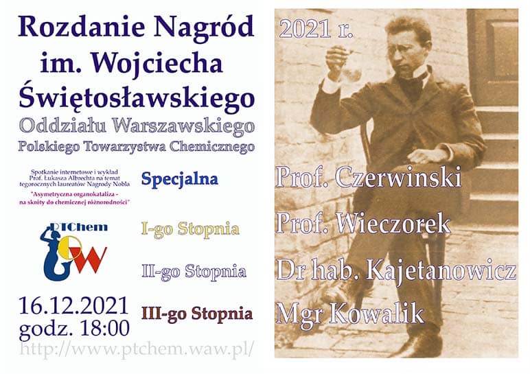 Uprzejmie informujemy, że Zarząd Oddziału Warszawskiego Polskiego Towarzystwa Chemicznego wskazał tegorocznych Laureatów Konkursu: