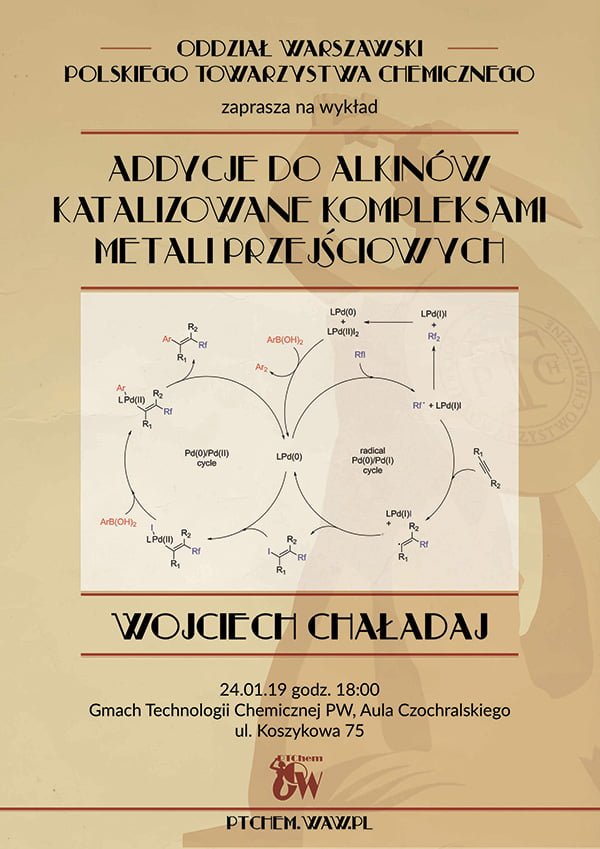 24.01.2019, godz. 18:00, Gmach Technologii Chemicznej PW, Aula Czochralskiego, ul. Koszykowa 75.
