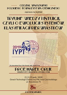4.04.2019, godz. 18:00, Gmach Technologii Chemicznej PW, Aula Czochralskiego, ul. Koszykowa 75.