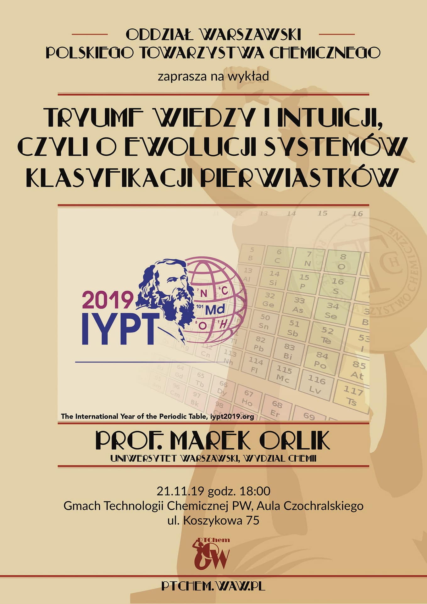 4.04.2019, godz. 18:00, Gmach Technologii Chemicznej PW, Aula Czochralskiego, ul. Koszykowa 75.